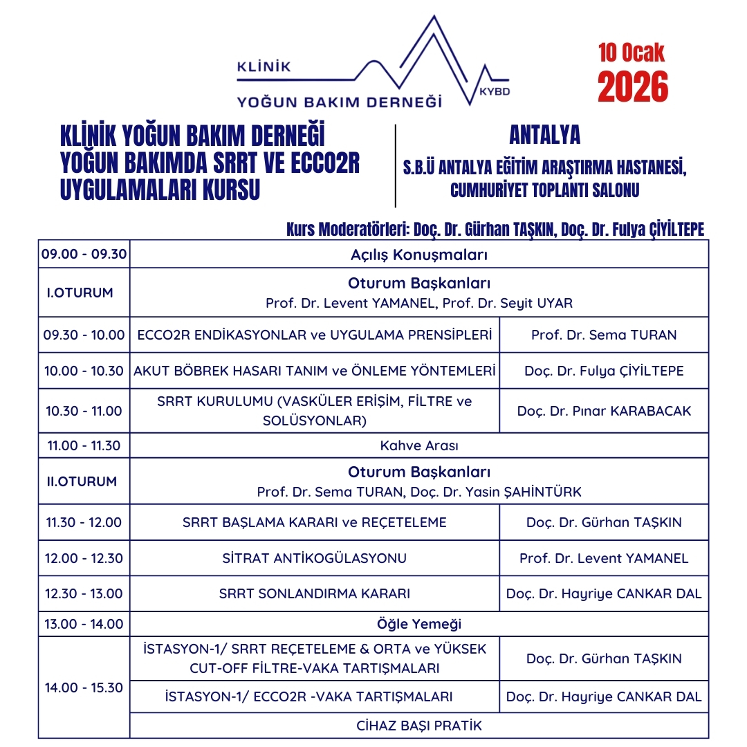 YOĞUN BAKIMDA SRRT ve ECCO2R UYGULAMALARI KURSU – ANTALYA